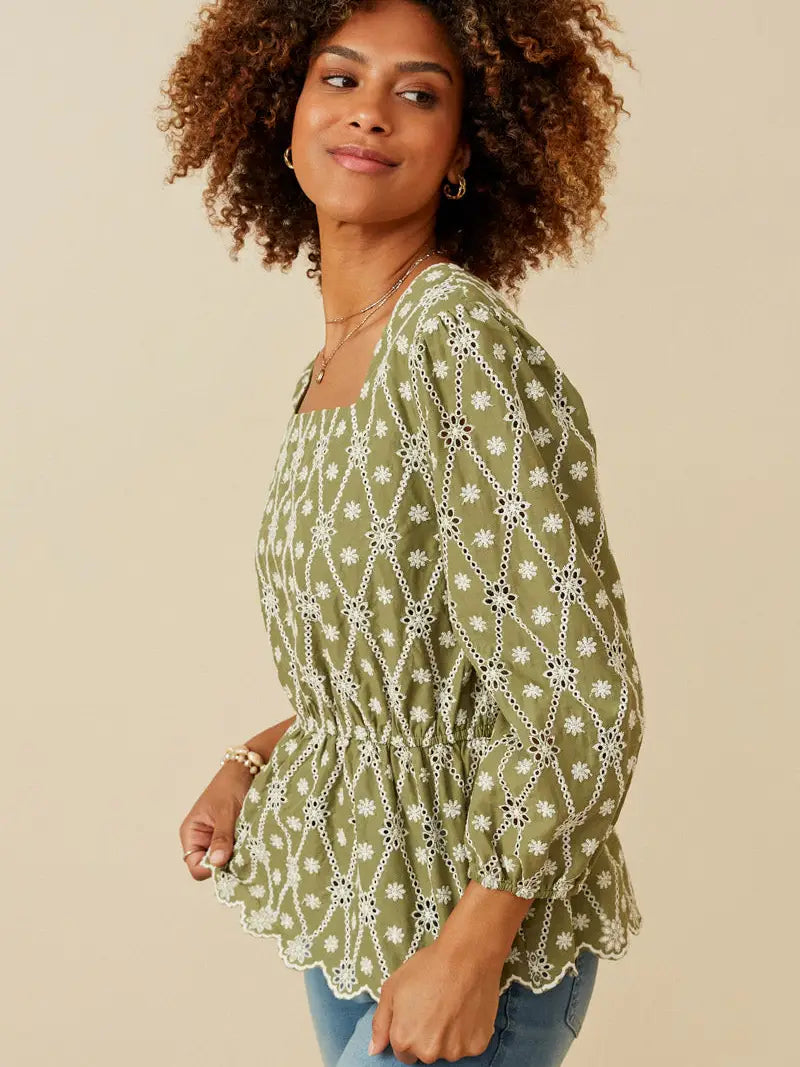 Dotted Lace Fringe Linen Top