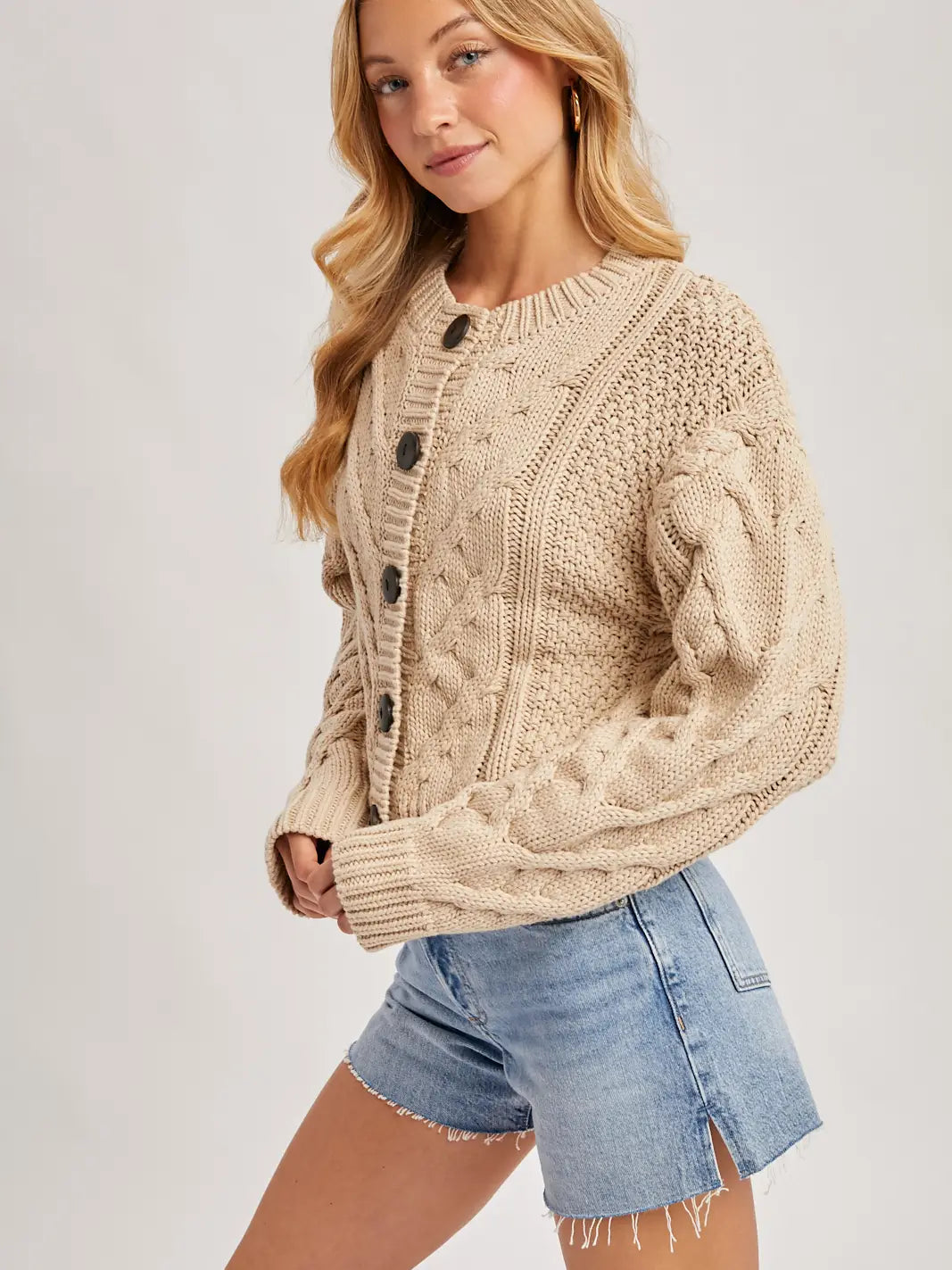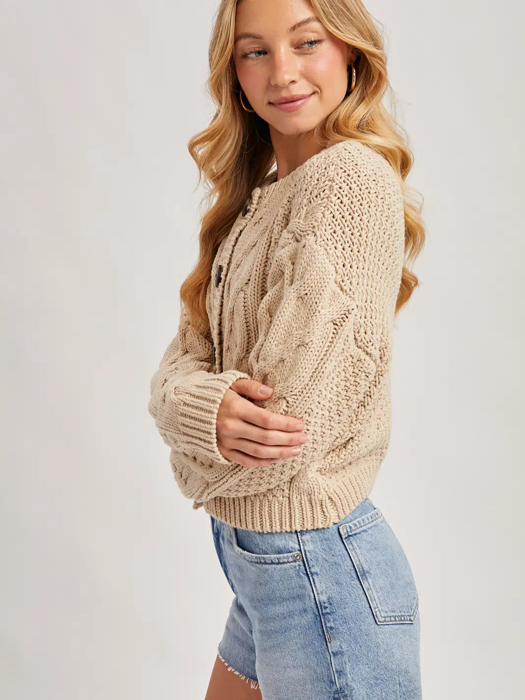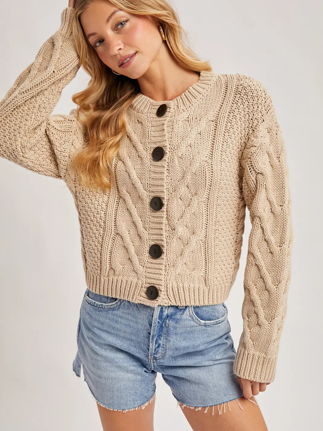 Cropped Cable Knit Cardigan
